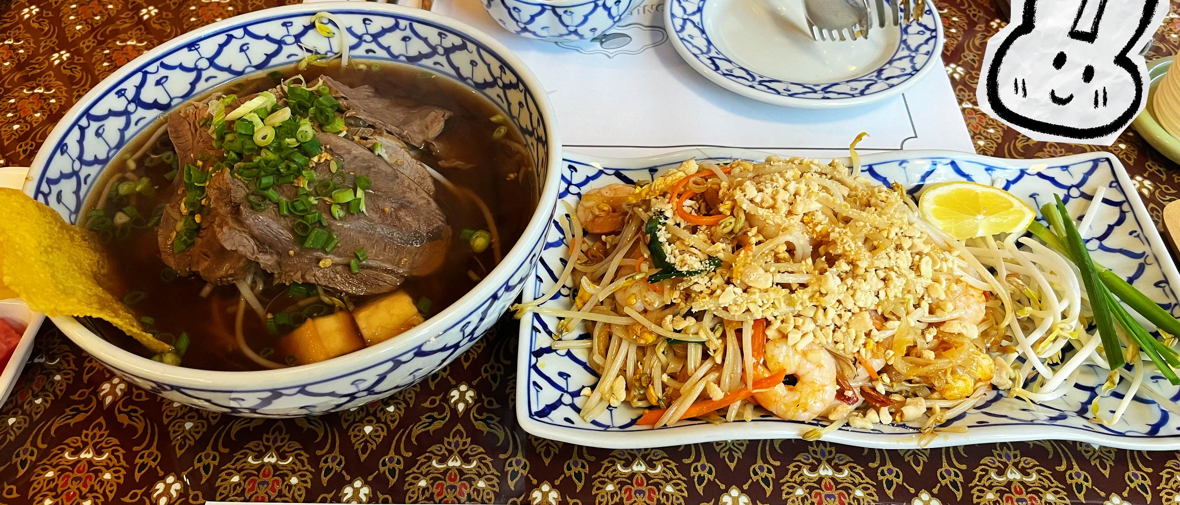 • 꾸웨이띠여우 (소고기 쌀국수): 진한 육수와 부드러운 소고기, 쫄깃한 면발이 어우러져 깔끔하면서도 깊은 감칠맛이 느껴지는 태국식 쌀국수