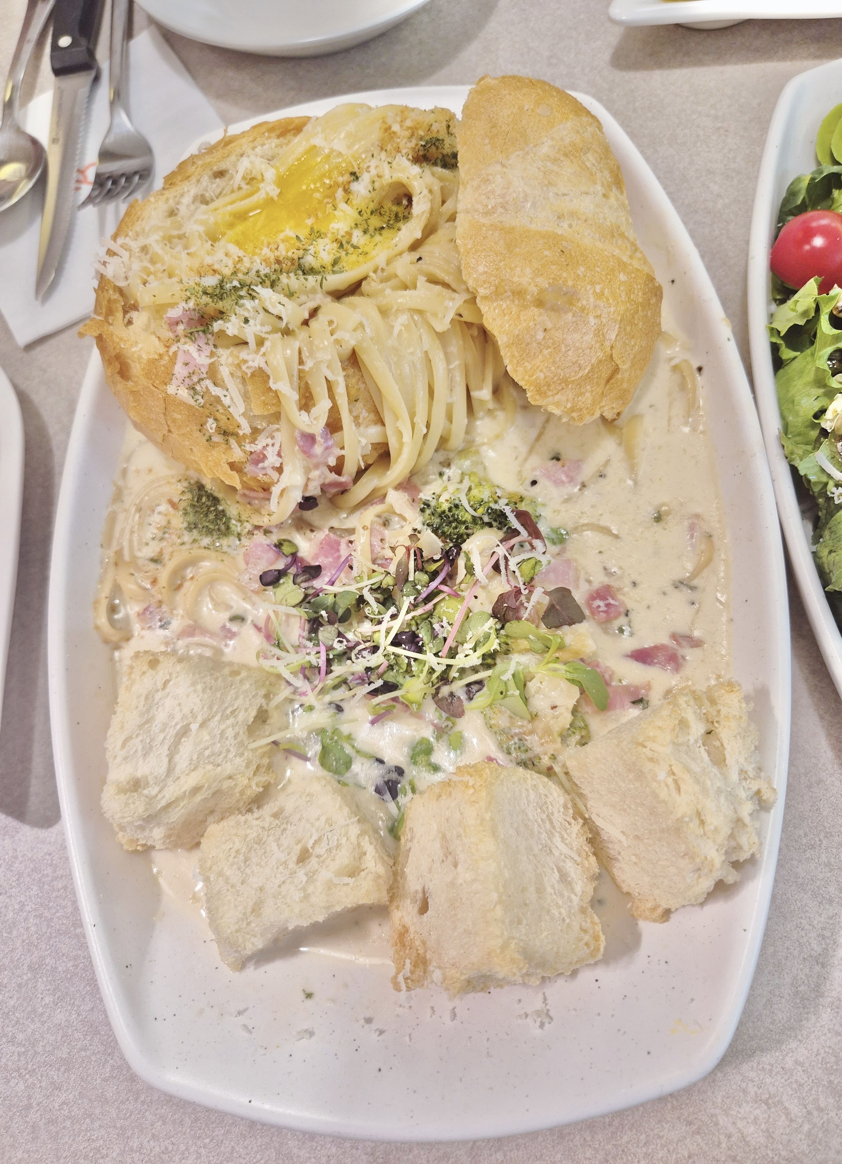 빠네: 겉은 바삭하고 속은 부드러운 빵 안에 크리미한 소스가 가득!