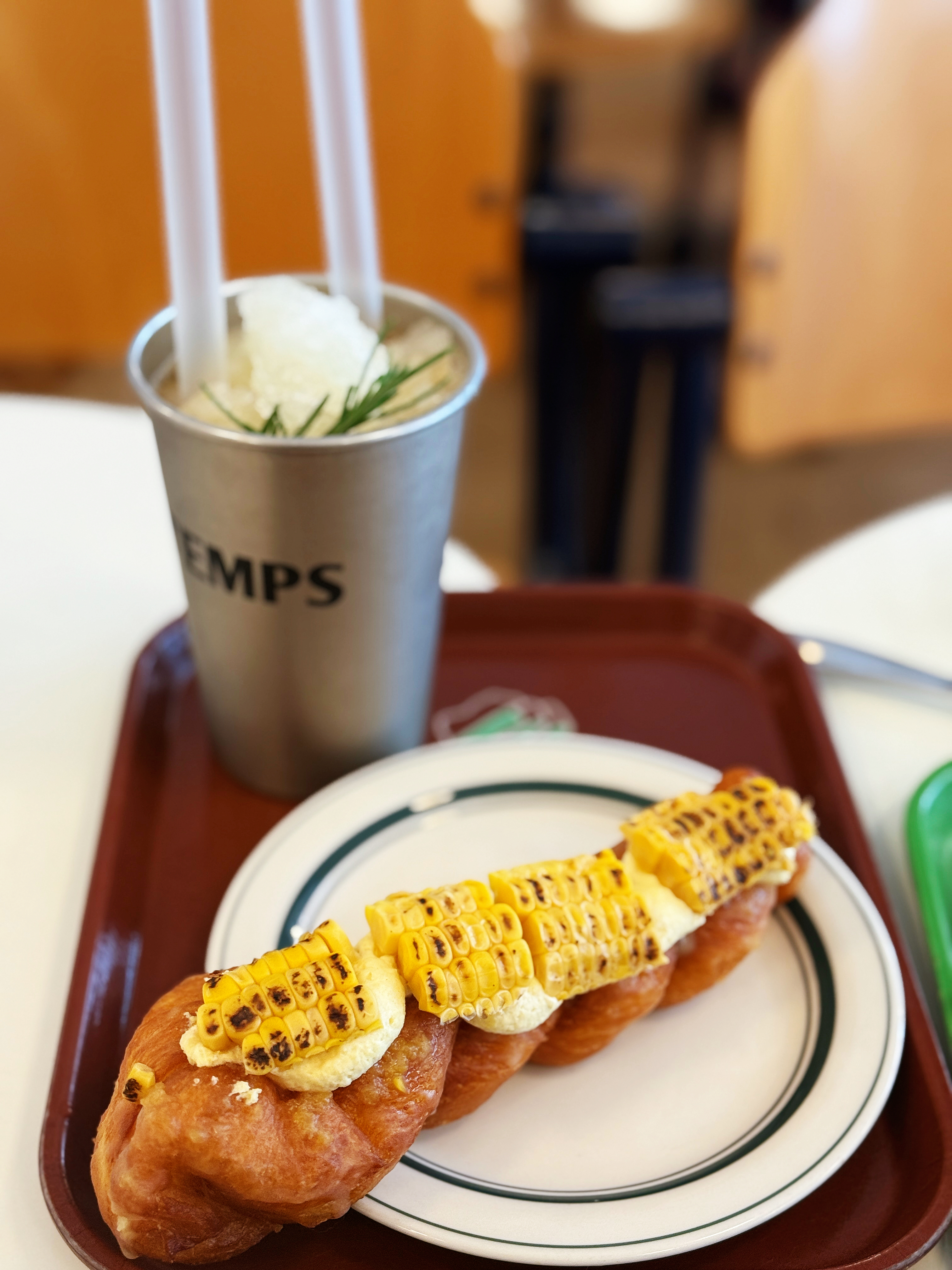 꽈배기 위에 달콤하고 고소콘 크림이 가득 올라가 있고